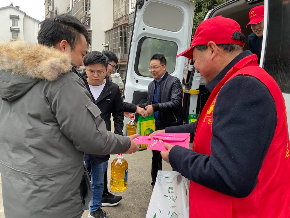 通過與就地過年的新居民員工進行溝通聯系,志愿者們開著滿載慰問品的車輛,在大街小巷中穿梭,把慰問品送到每一位員工手中,提前預祝他們新年快樂!